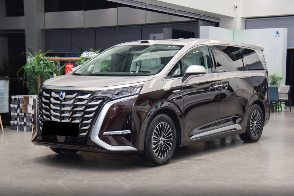四款新车的产品力各有不同程度上的提升优化,接下来我们重点了解一番至尊版,整个外观设计与老款保持高度一致,最大亮点就是采用双拼车身,看着就很尊贵。前脸是最具辨识度的部分,大尺寸前格栅表面加以L形镀铬饰条进行点缀,两侧还有粗壮C字形装饰条,将大灯组包围其中,既有辨识度又不显繁琐。车身侧面形态沉稳大气,尤其是撞色车身的加入使其在无形中多了几分贵气,配备18寸密幅式轮圈和双向电动侧滑门,兼顾美观性和实用性。