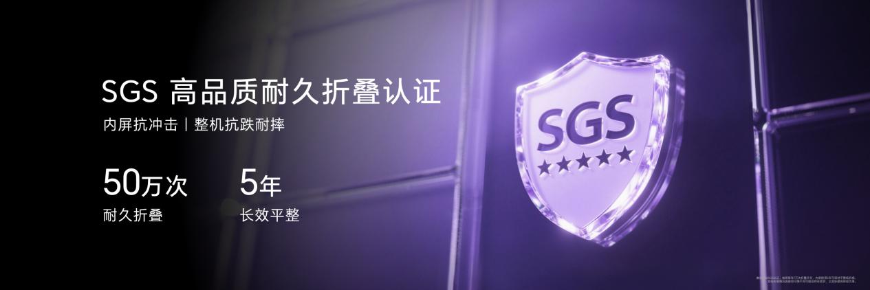 竖折从不是折叠形态与直板体验的二选一,而是两者的无缝融合,荣耀Magic V Flip2以硬核实力诠释竖折旗舰的可靠体验。荣耀Magic V Flip2在内屏配备了50μm超坚韧UTG玻璃,通过SGS高品质耐久折叠认证,具备内屏抗冲击,整机抗跌耐摔等特点,可以实现50万次耐久折叠,5年长效平整。