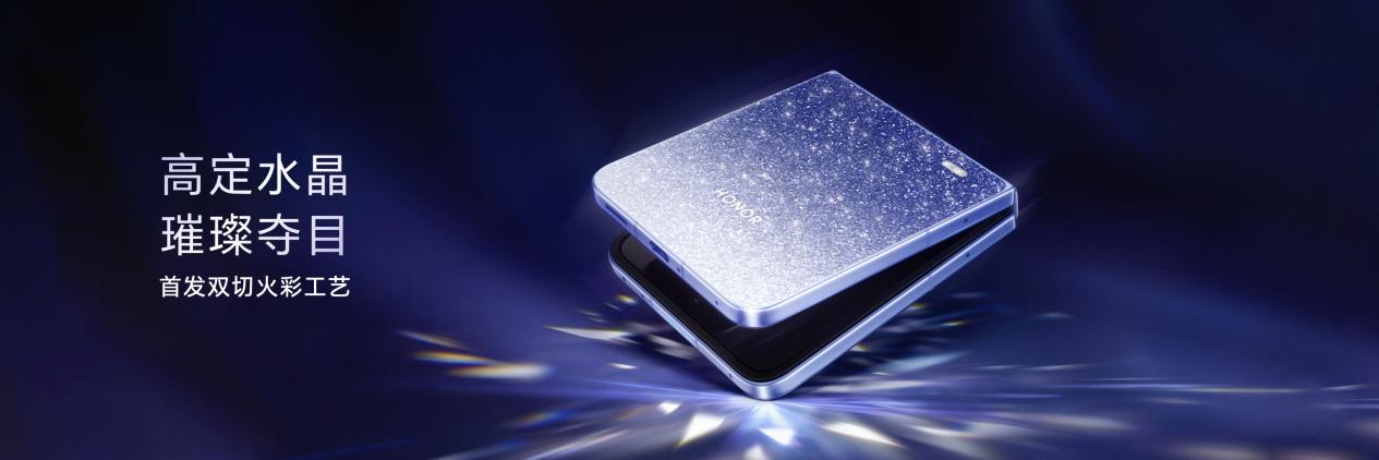 时尚,是个性的表达;而高定,能够把时尚的表达推向极致。在外观设计上,荣耀再度携手国际时尚大师Professor Jimmy Choo周仰杰博士,将源于宝石三角形切面的设计语言融入产品,打造荣耀Magic V Flip2高定款,颜色命名为织梦蓝。为了呈现出高定水晶的效果,荣耀采用全新的双切火彩工艺,并在镜头和轴盖上融入钻石元素,让梦幻感延伸到每一处细节,搭配流光溢彩的高定主题,外在惊艳与内在精彩同频闪耀。同时,荣耀Magic V Flip2还推出臻享高定礼盒,将高定体验延续到开箱的每一刻,为用户带来更加沉浸的高定仪式感。