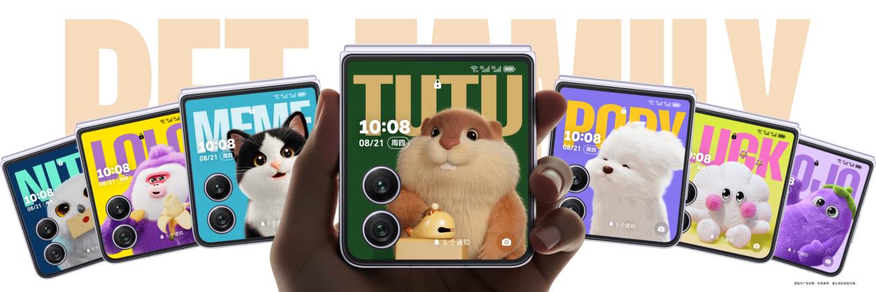 高定绽放闪耀,萌宠治愈内心。荣耀Magic V Flip2在外屏趣味体验上进一步拓展,全新的萌宠亲友团成为随身携带的“情绪布洛芬”——情绪稳定的“土土”、主打松弛的“JOJO”、好运小云“Lucky”以及喵星小财神等超多萌宠星人,不仅能根据外屏操作做出俏皮反应,更有“陪聊”功能,让每一次外屏交互都成为温暖的情绪充电站。