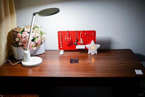 而且它的色温可在3000K-5700K之间调节,还支持无极调光,能根据环境和需求灵活调整光线。不过它采用的直发光设计容易在光滑书面产生反光,而且发光面直径较小,桌面边缘可能出现光照不均的情况。