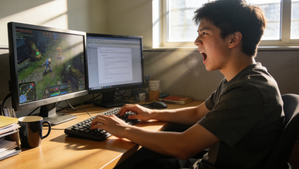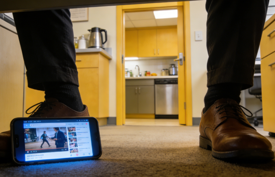 上周真是被组里小周搞烦了。他工位在最里头,靠着窗户,平时看着挺老实,做事也利落,可这半个月,我好几次路过,都见他手忙脚乱地按键盘,屏幕一下子切到工作页面。有次我去茶水间接水,余光瞥见他手机架在键盘下面,正刷短视频,还偷偷笑出了声,购物软件的消息弹出来,他慌慌张张按掉。
