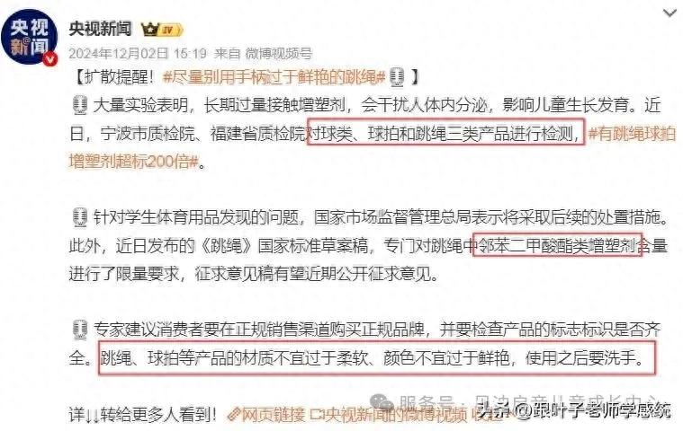 球类、球拍和跳绳,都是从幼儿园到中小学生课内、课外使用频率很高的物品,没想到可能会存在问题。而且导致不合格的“罪魁祸首”都是增塑剂!