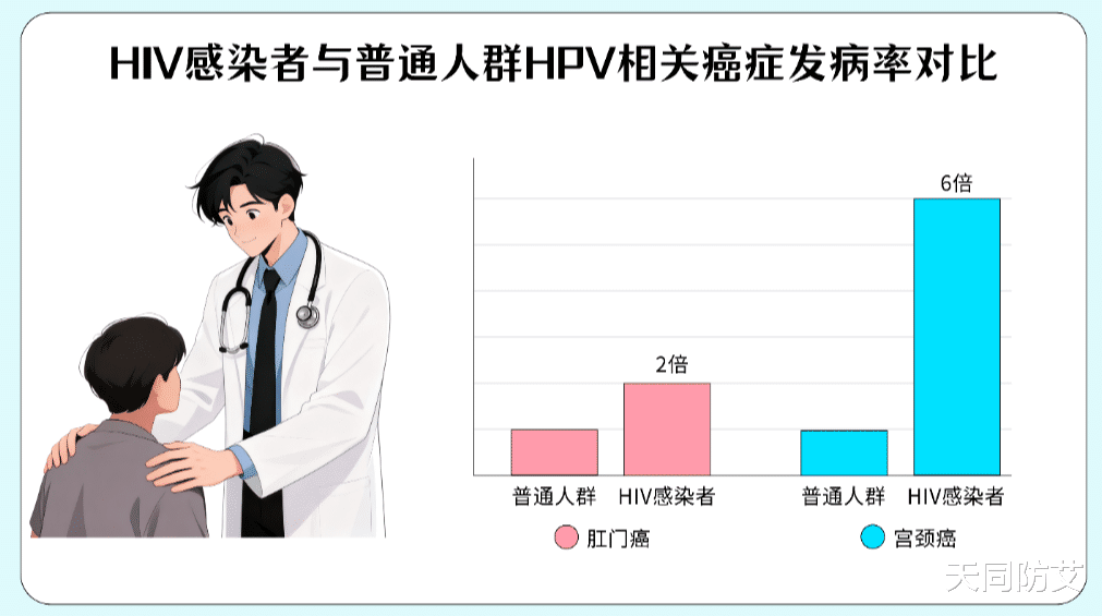 HPV相关癌症的发病率在HIV感染者中也显著升高。研究发现,HIV感染者中HPV相关的肛门癌发病率比普通人群高出两倍,而宫颈癌的发病率更是高达六倍。