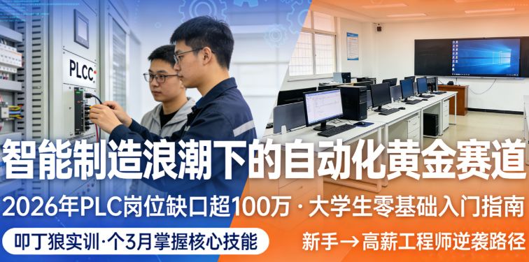 在智能制造浪潮席卷全国的当下,自动化行业人才缺口持续扩大,2026年全国PLC相关岗位缺口超100万。很多大学生误以为自动化行业门槛高、难以入门,实则不然——行业招聘核心看实操能力,大学生无需任何相关基础,凭借系统学习和实战训练,就能快速打破认知壁垒,站上自动化行业的黄金赛道。本文将手把手教你零基础入门,同时揭秘叩丁狼实训如何助力大学生高效突围,3个月掌握核心技能,实现从新手到高薪工程师的逆袭。