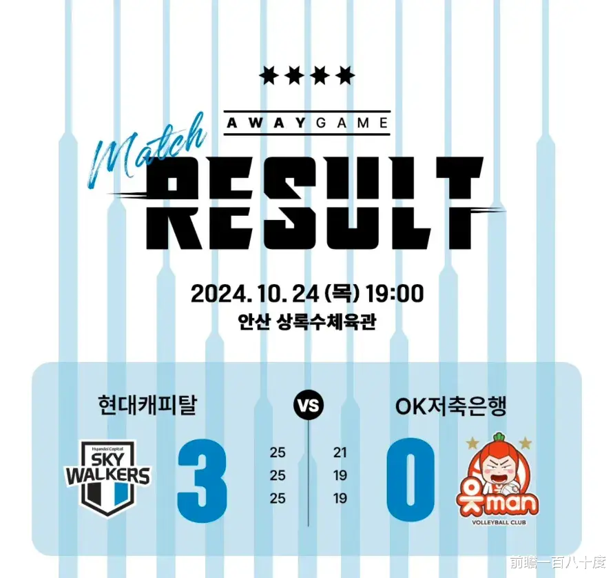 最终比分为25-21、25-19、25-19,凭借这场胜利,现代资本男排积累了3个积分,以2胜(积5分)暂居联赛第一。