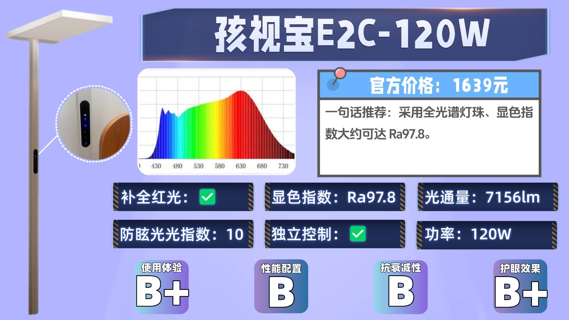什么牌子的大路灯护眼好?这款E2C120W是孩视宝的基础款,这款护眼大路灯从外观上看比较简约,上下发光的设计有效减少了光线的明暗差,带来宽广的照明,一定程度上减轻了视觉负担,另外在核心光源上,它采用全光谱灯珠、显色指数大约可达 Ra97.8,功能上,它支持无级调光、入席感应、上下分控等功能,底座也有滑轮移动比较简单,不过也有一些要点需注意,视觉上整体的光感比较强,也伴随着出现了一些轻微的眩光。