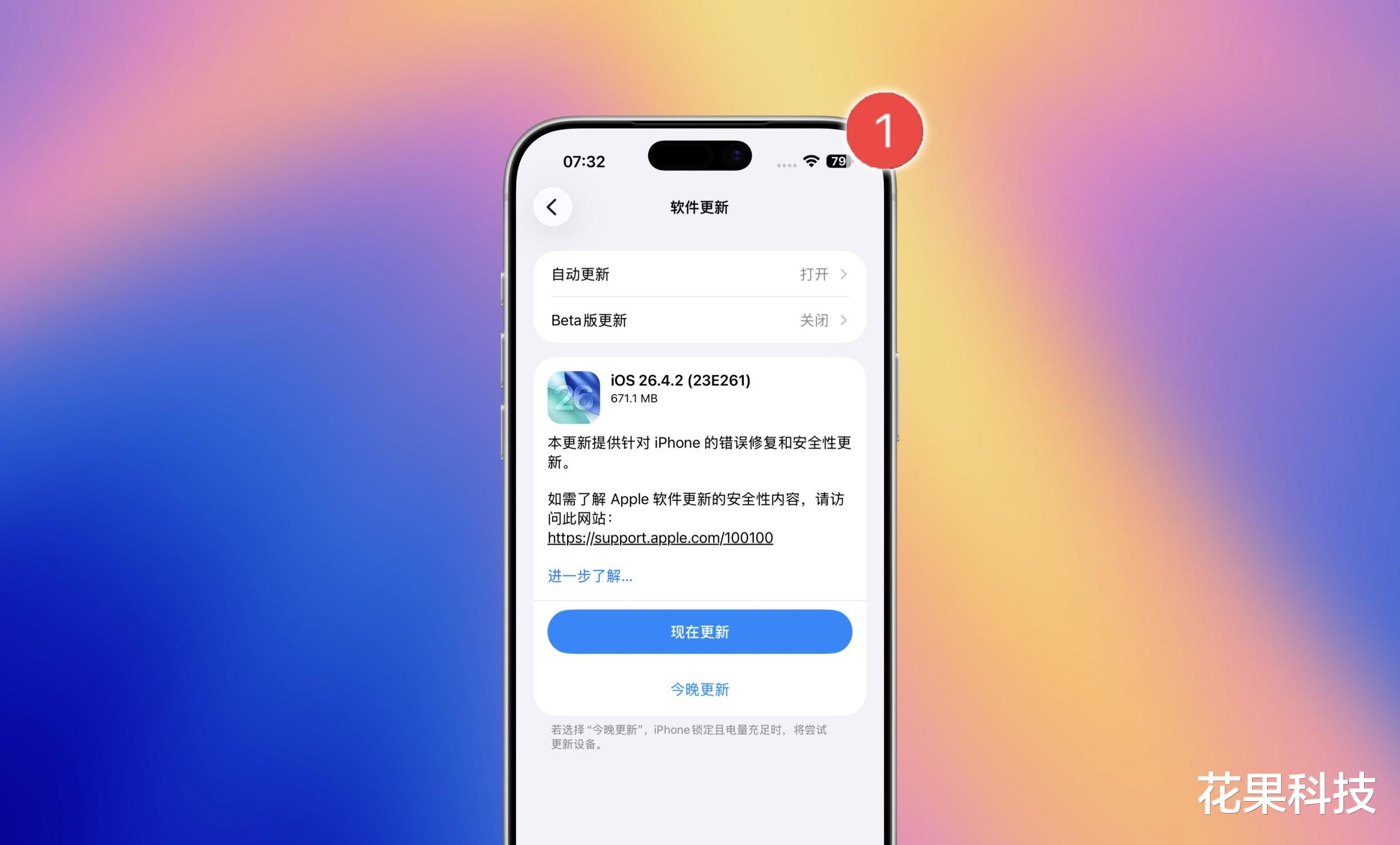 这次的 iOS 26.4.2 正式版版本号是 23E261,距离上个正式版的推送仅仅两周时间。