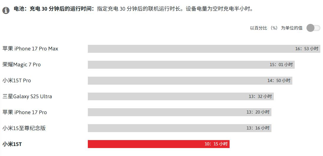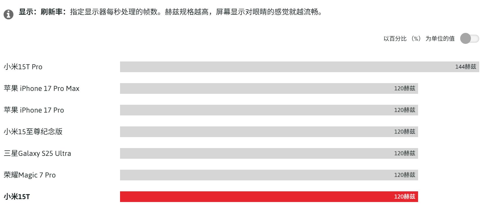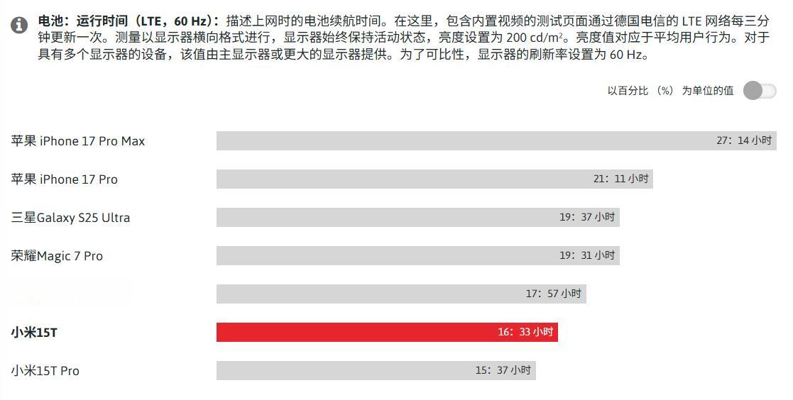 小米 15T 获评1.3,媲美小米 15 以及 iPhone 17、16 Pro、16 Pro Max