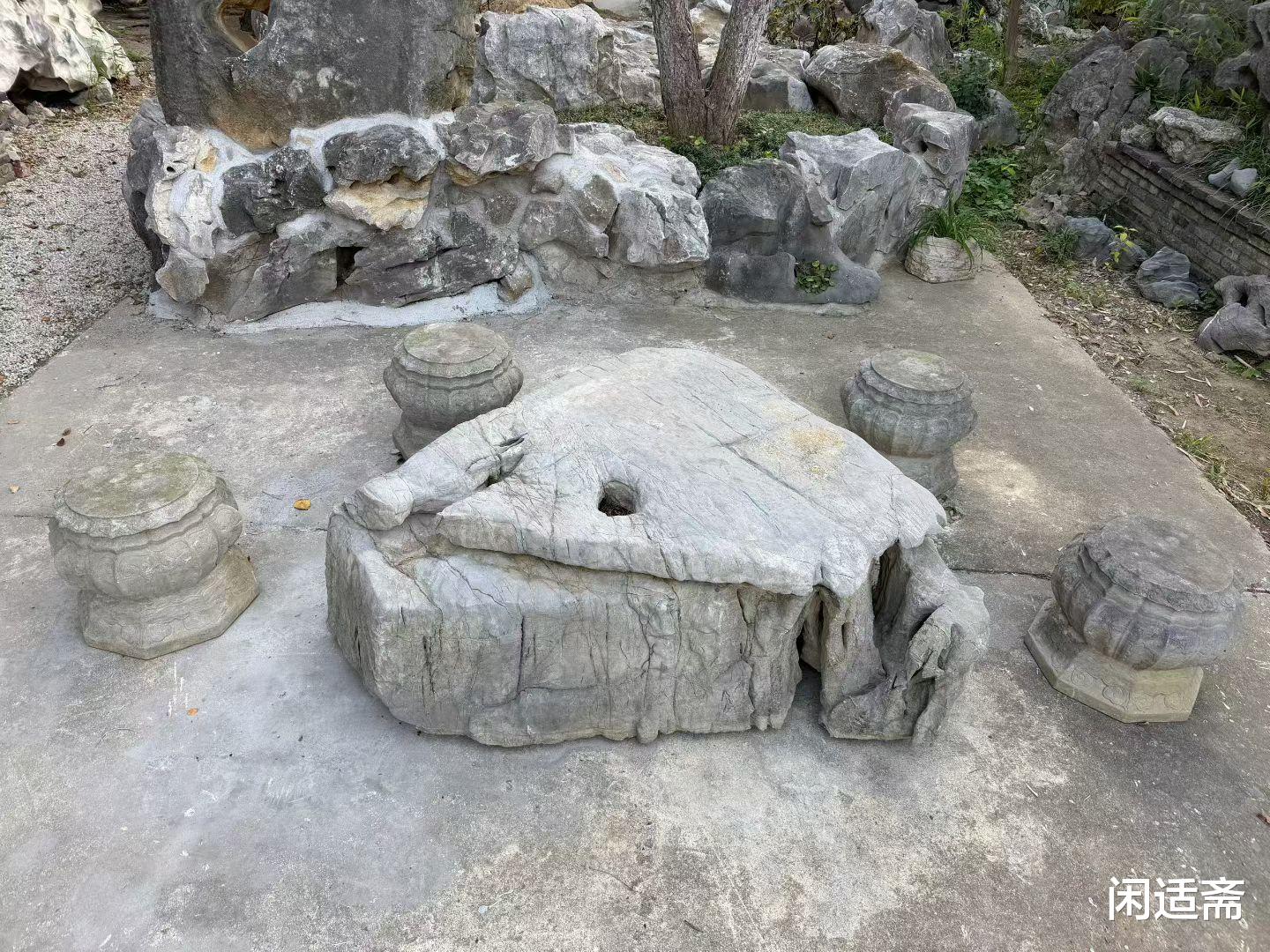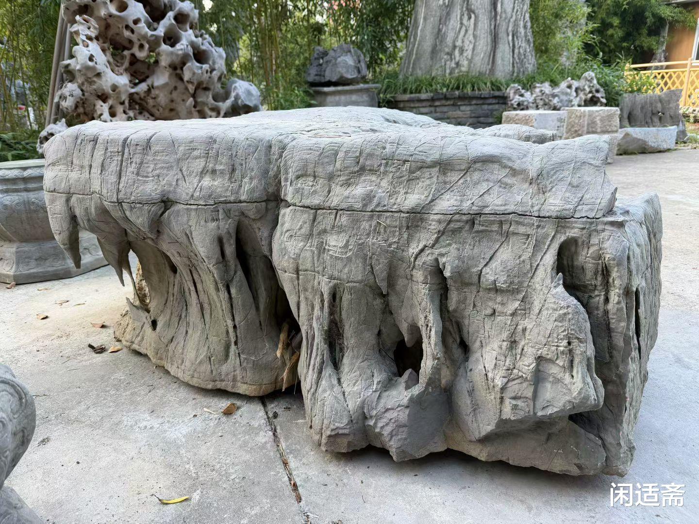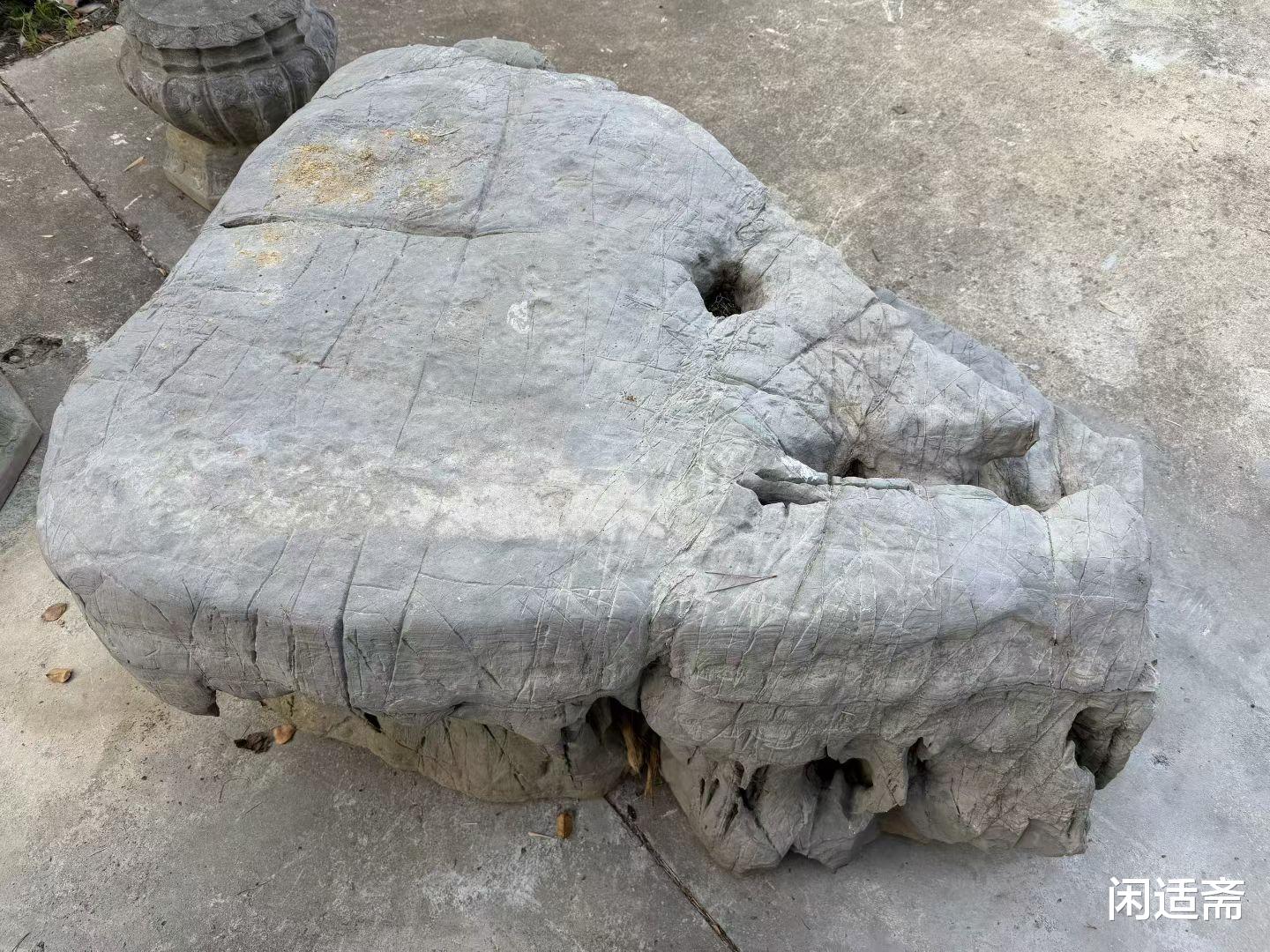 最妙的是随形石体,顺应着老太湖石的天然轮廓,是对自然的尊重,更暗合了中式美学 “道法自然” 的追求,让石桌仿佛是从庭院土壤中自然 “生长” 而出,与周遭的花木、流水、青石缸形成和谐共鸣。