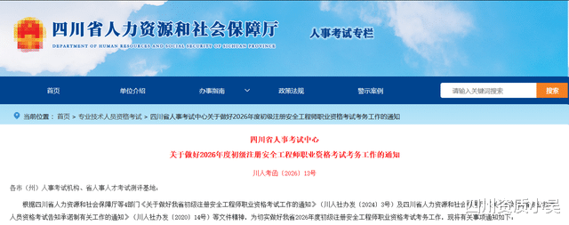 注意啦!四川省2026年度初级注册安全工程师职业资格考试、二级造价工程师职业资格考试开始报名了!考试时间是多久?有哪些具体要求?一起来看看吧!