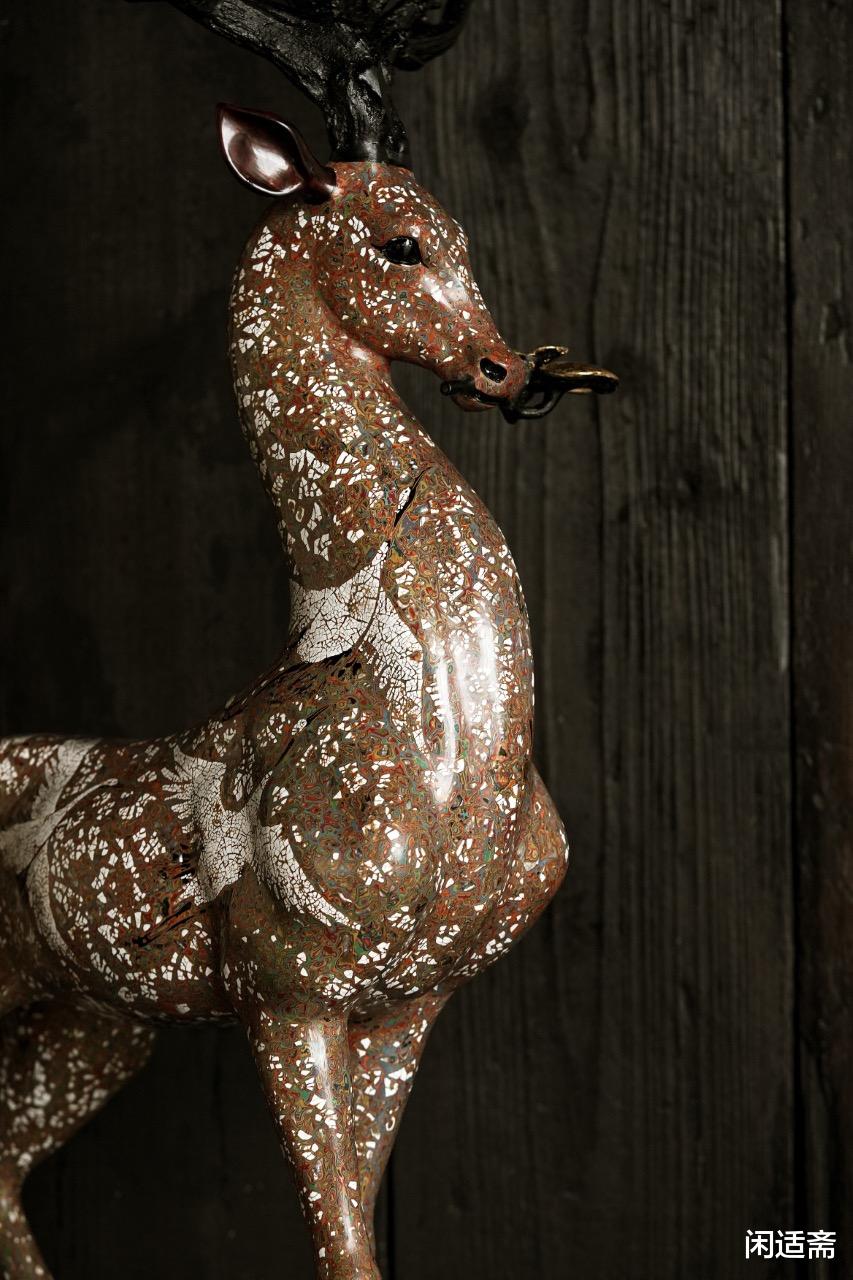 它贵而亲和,不似金玉般张扬,却随时光沉淀出更饱满的质感 —— 漆层会因岁月摩挲愈发温润,蛋壳的冰裂纹也会在时光中晕染出独特光泽。置于书案,可与笔墨纸砚相映,文气自生;陈于客厅,能平衡空间的冷硬,暖意流转;安放玄关,又成迎客的吉祥符号。这尊铜骨漆身的福鹿,终究是将敦煌的净美、古法的匠心与生活的暖意,都藏进了朝夕相伴的时光里。