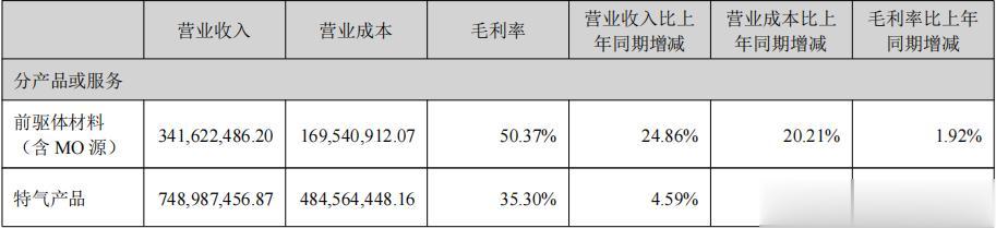 其中,前驱体(含MO源)产品收入为3.4亿元,占比27.8%,毛利率约为50.4%;特气产品收入为7.5亿元,占比60.9%,毛利率约为35.3%。假设其他收入来自光刻胶,那么,南大光电2025年上半年光刻胶收入为1.4亿元,占比11.3%,毛利率约为28.7%。