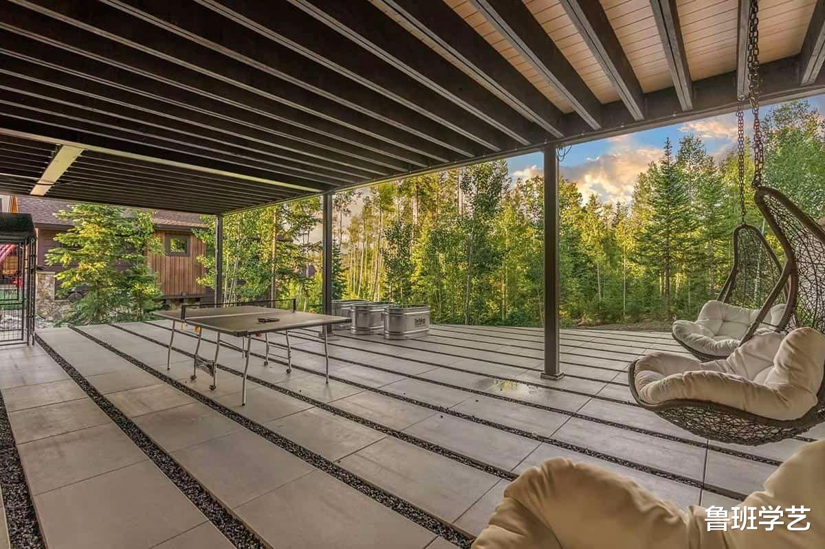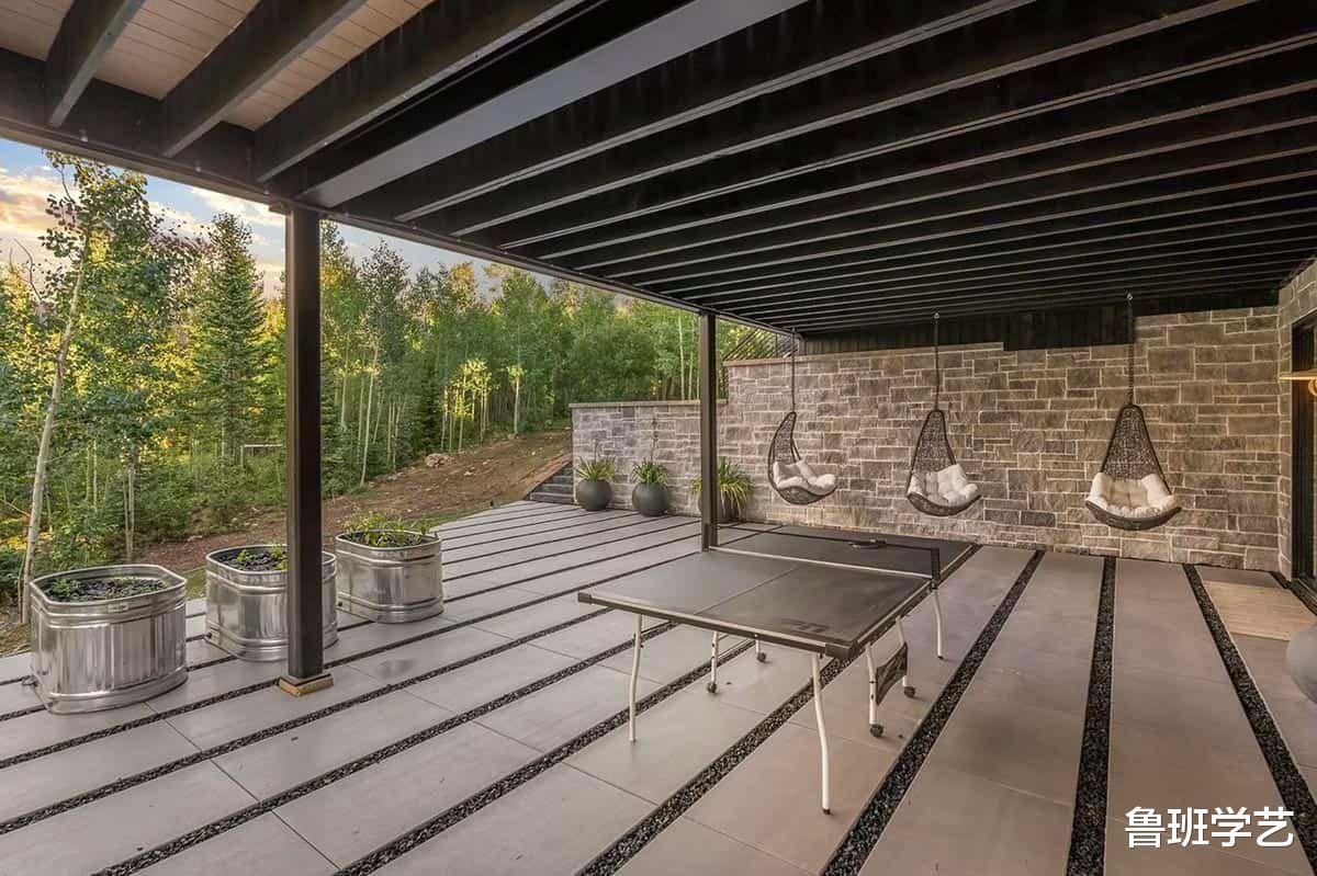 室外的娱乐区设计了乒乓台,而地面并没有像正常的地面一样采用瓷砖,这里和入户一样采用石材的铺装。