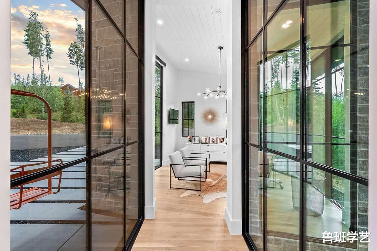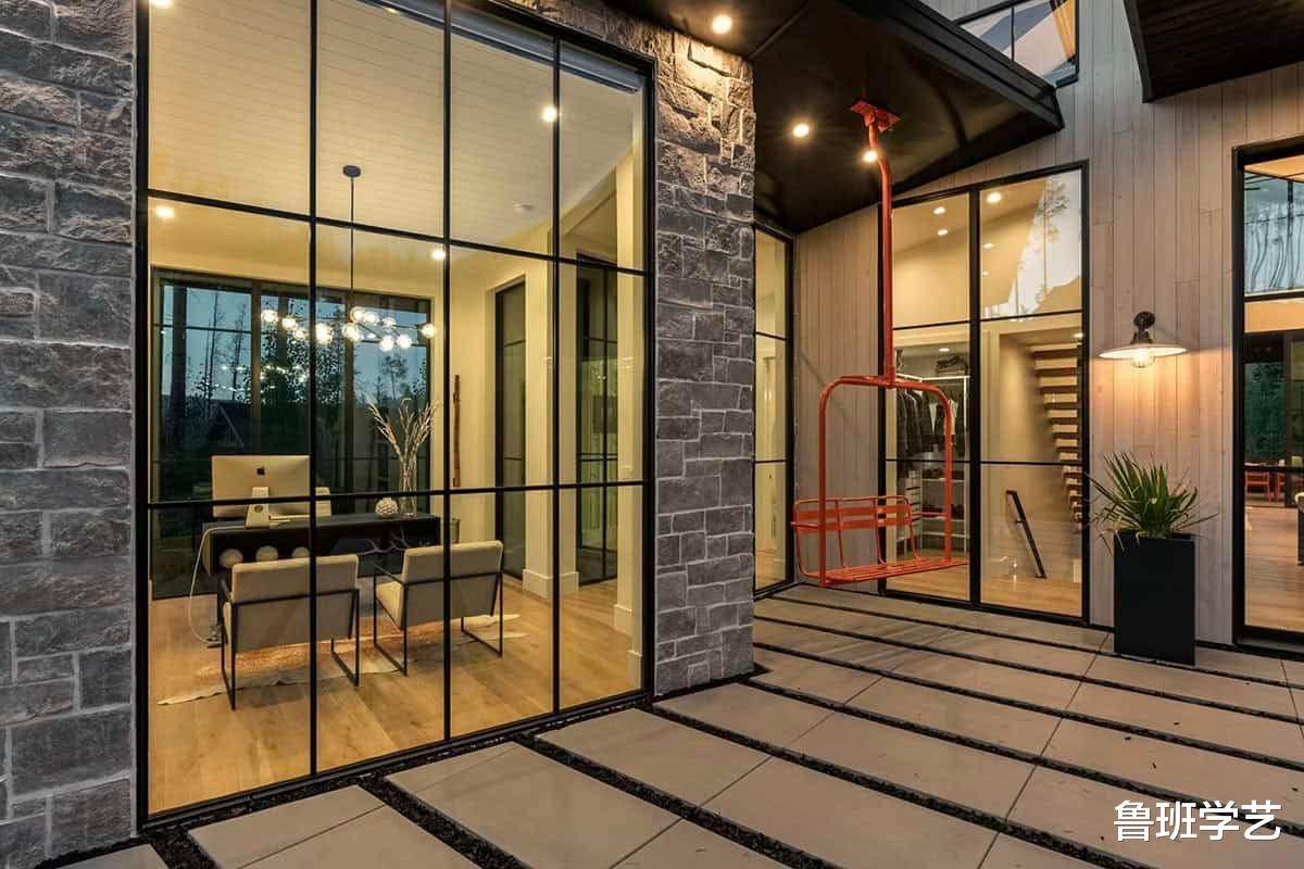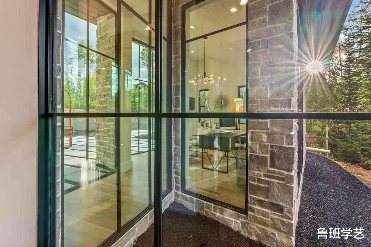 一块大玻璃的门窗,里面外面的空间相互映射,空间的相互交流。