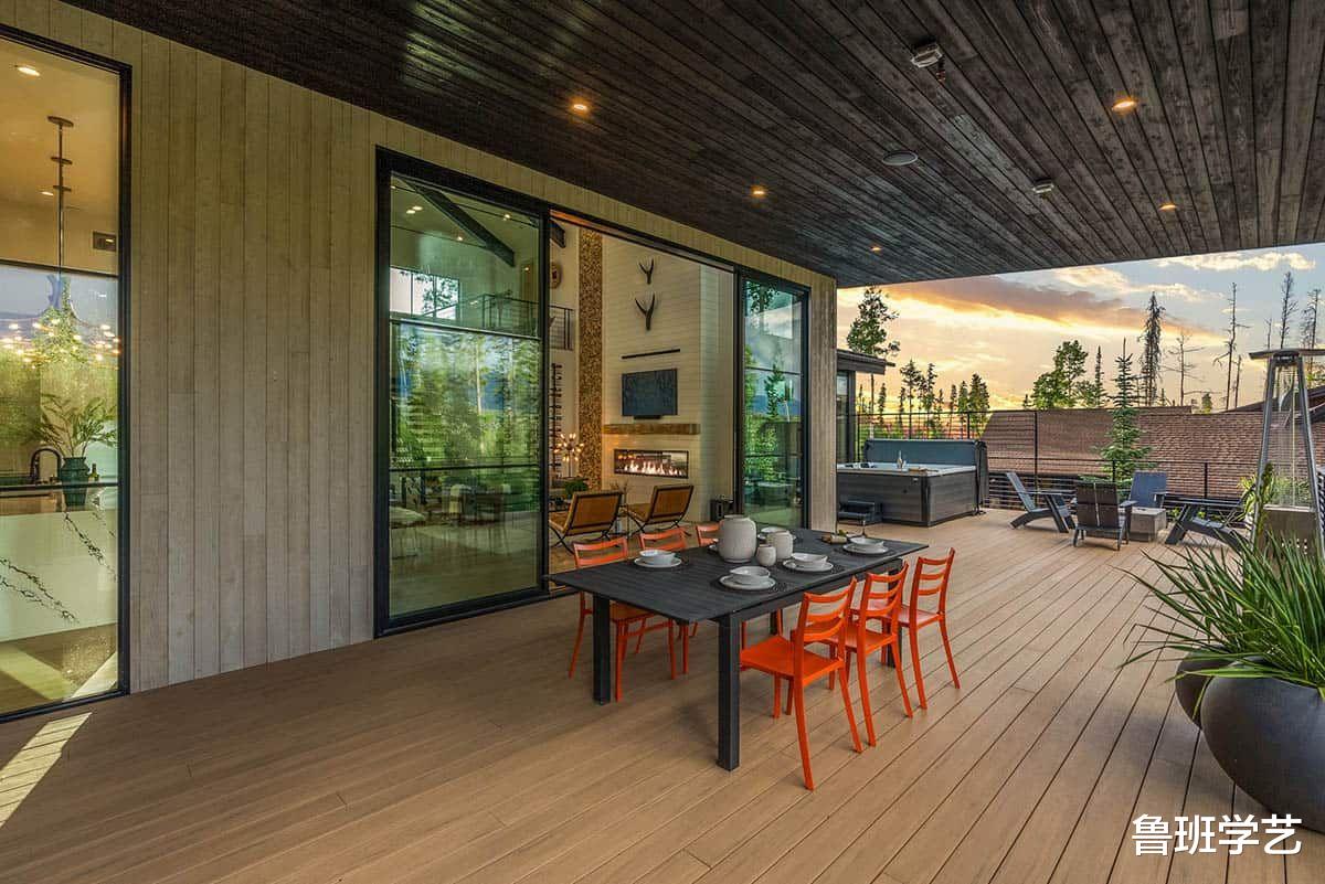 户外就餐区,并没有像传统的设计考虑在完全的室外,而是设计在屋檐下面,这样即使是下雨也不会影响。