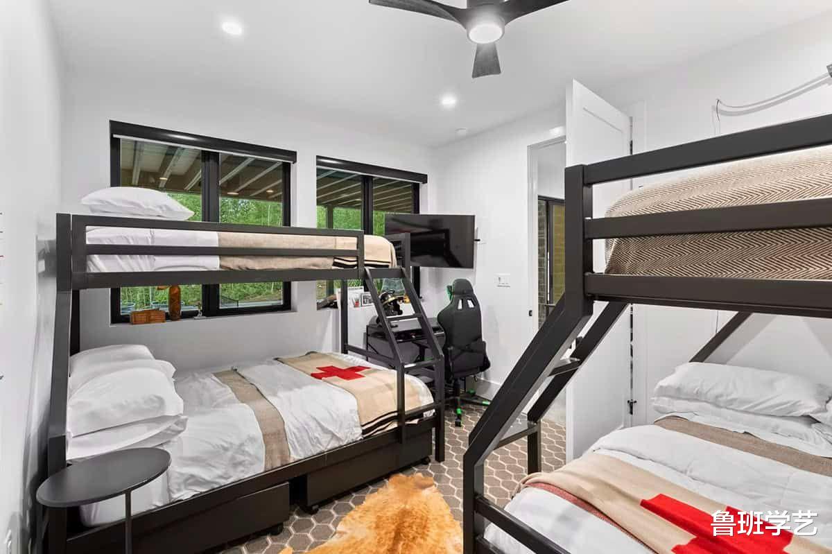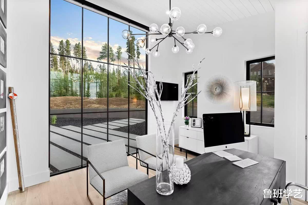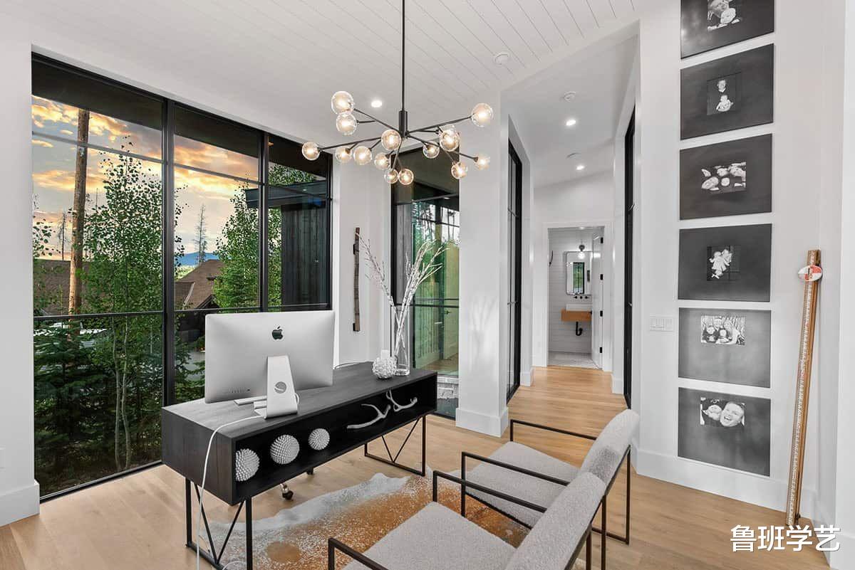 书房设计在坡屋顶的角落,保持安静的地方。这里同样一块很大的落地窗,采光,空气流通,在这里学习和办公并不会觉得疲惫。