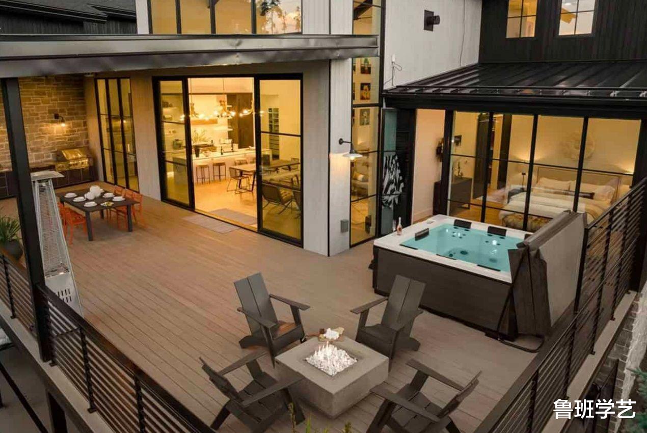 休闲空间在露天地方,设计有火炉,正所谓“开局先升级火炉”这里进门就考虑火炉。