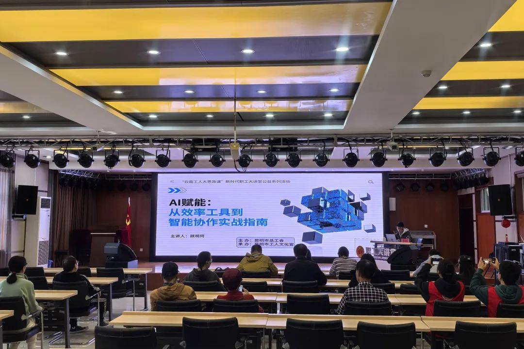 “云南工人大思政课”新时代职工大讲堂系列公益活动,讲座以普惠教育加公益性服务为导向,通过与企业、社会团体和院校合作,提高管理效率,实现资源共享和人才联动,共同推动职工教育和文化提升。此次活动不仅搭建了职工与前沿技术专家零距离交流的平台,更通过手把手的实战案例,助力昆明市职工轻松玩转AI工具,提升数字竞争力。