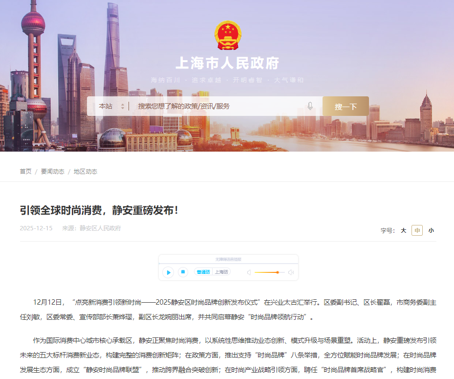 12月12日,“点亮新消费 引领新时尚——2025静安区时尚品牌创新发布仪式”于兴业太古汇举办。活动期间,静安区面向社会公布了将大力吸引与培育的五大消费新模式、新业态和新场景,同时推出全国首个支持时尚品牌的“八条举措”。
