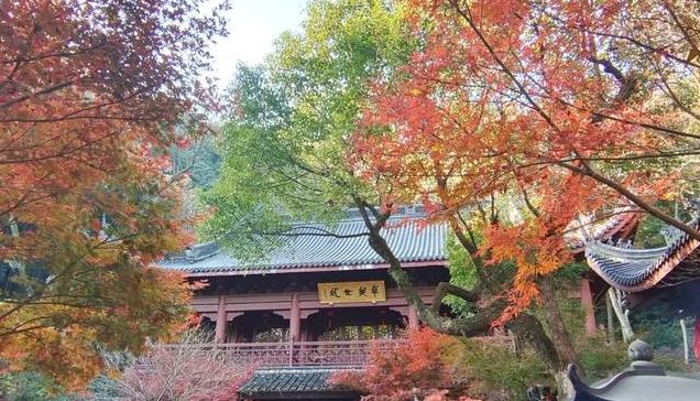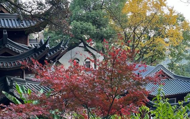 其实呢,在这个元素一相逢,便会产生最绚烂缤纷的景观!肉眼可见,树叶在不经意间,已经呈现红、黄、棕、橙色,山林如调色盘一般,渲染着丰富的色彩,搭配上寺庙的静谧和庄严,藏着别样的禅韵。尤其是灵隐寺,可谓是“国内寺庙赏枫终级地之一”!