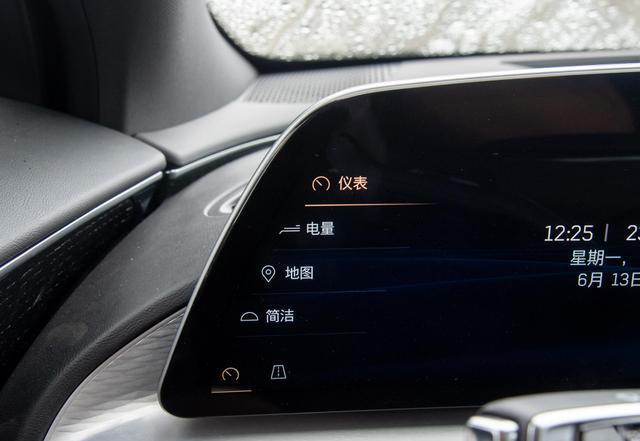 在功能呈现方面,这块33英寸的曲面显示屏,其左侧边缘特别设计为触控区域,用户能直接在此选取仪表盘、电量状态、导航地图或是其他简洁界面模式,以便调控位于方向盘正后方的屏幕内容。至于曲面屏的右侧部分,则承载着传统中控屏幕的功能。
