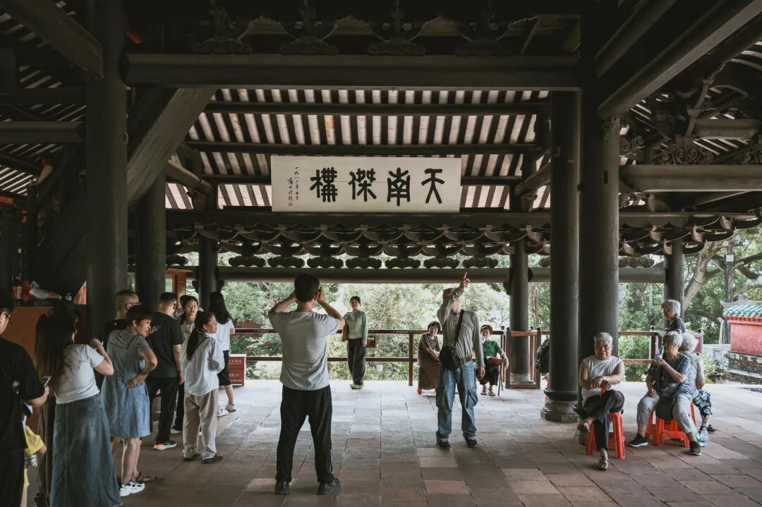 这种“悬柱奇观”,在现代建筑里几乎找不到同类。当建筑师们依赖钢结构的强度来实现悬挑时,明代的工匠们早已用木头玩转出了更精妙的平衡。他们不用图纸上的公式计算,只用经验与直觉,把每一根挑枋的长度、每一个榫卯的深度都拿捏得恰到好处。或许正是因为没有钢筋的束缚,这些格木才能在温度变化时自由伸缩,在风力作用下微微晃动,用自己的韧性对抗着自然的力量。四百多年来,无数游人在这四根悬空柱下驻足,有人试图用纸张去试探柱脚的空隙,有人忍不住伸手去触摸那悬空的柱身,仿佛想从木质的冰凉里,摸出当年工匠们埋下的智慧密码。