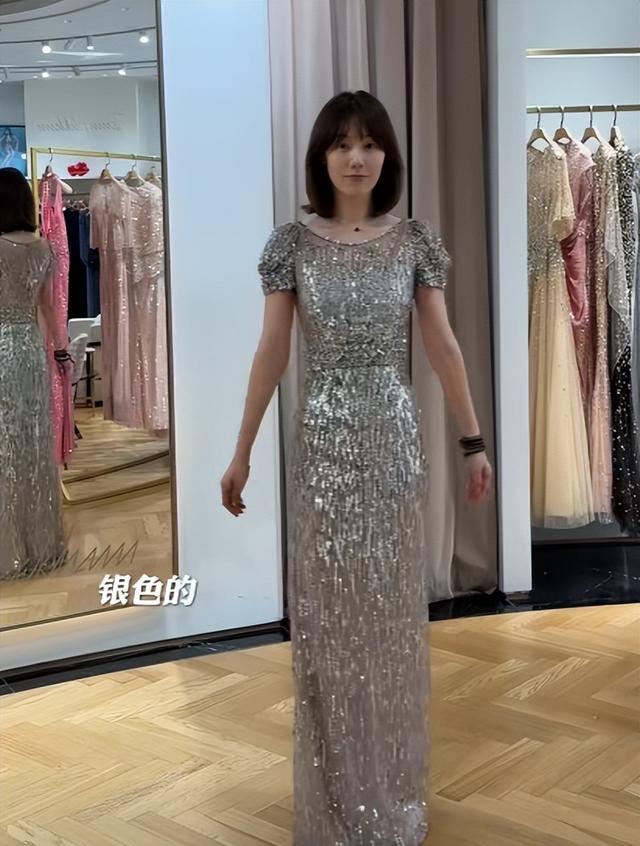 另外一件银色的更是让她看起来亮闪闪的,真是漂亮极了,