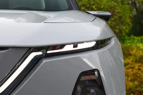 马自达EZ-60(图片|配置|询价)这车真是把电动车玩出了新高度!外观一看就是马自达亲生的,但比普通SUV帅太多了。前脸那个会发光的立体车标简直绝了,60mm的深度让灯光像水晶一样通透,晚上开出去肯定拉风。车身线条那叫一个顺滑,听说光是打磨一个曲面就花了700多个小时,设计师可能有强迫症吧。更吸睛的是那个星云紫车漆,阳光下像星空一样闪,开在路上回头率爆表。轮毂直接上了21寸大脚,造型像花瓣一样,跑起来特别带感。后视镜做得超薄,像鲨鱼鳍似的,里面还塞了一堆高科技,关键还能折叠旋转。全车设计了9个风道,D柱那个特别显眼,不仅好看还能优化气流,跟跑车一个路子。而且风噪降低,车内语音清晰度提升8%,NVH静谧性得到提升。