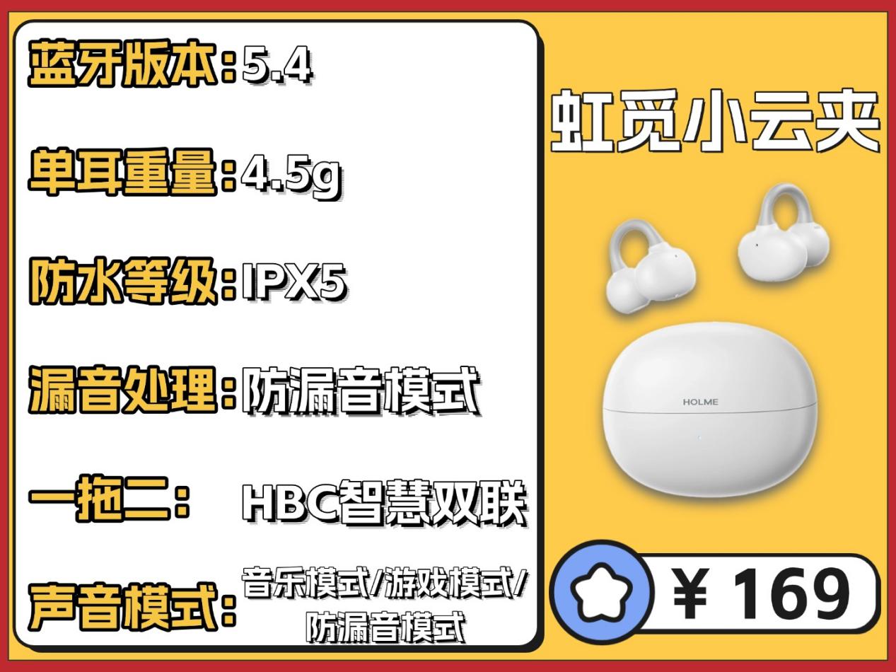 在百元价位的耳夹式耳机中,这款的综合表现十分出色。音质方面远超同价位的开放式耳机,13mm石墨烯振膜凭借优异的形变能力,让整体音质细腻顺滑,完全没有多数百元耳机的粗糙感,音乐细节还原得清晰自然;虹觅声学采用的“少修饰”调音风格也很讨喜,保留了声音的本真质感,搭配H-Zone空间技术,听感的层次感与立体感都相当到位。
