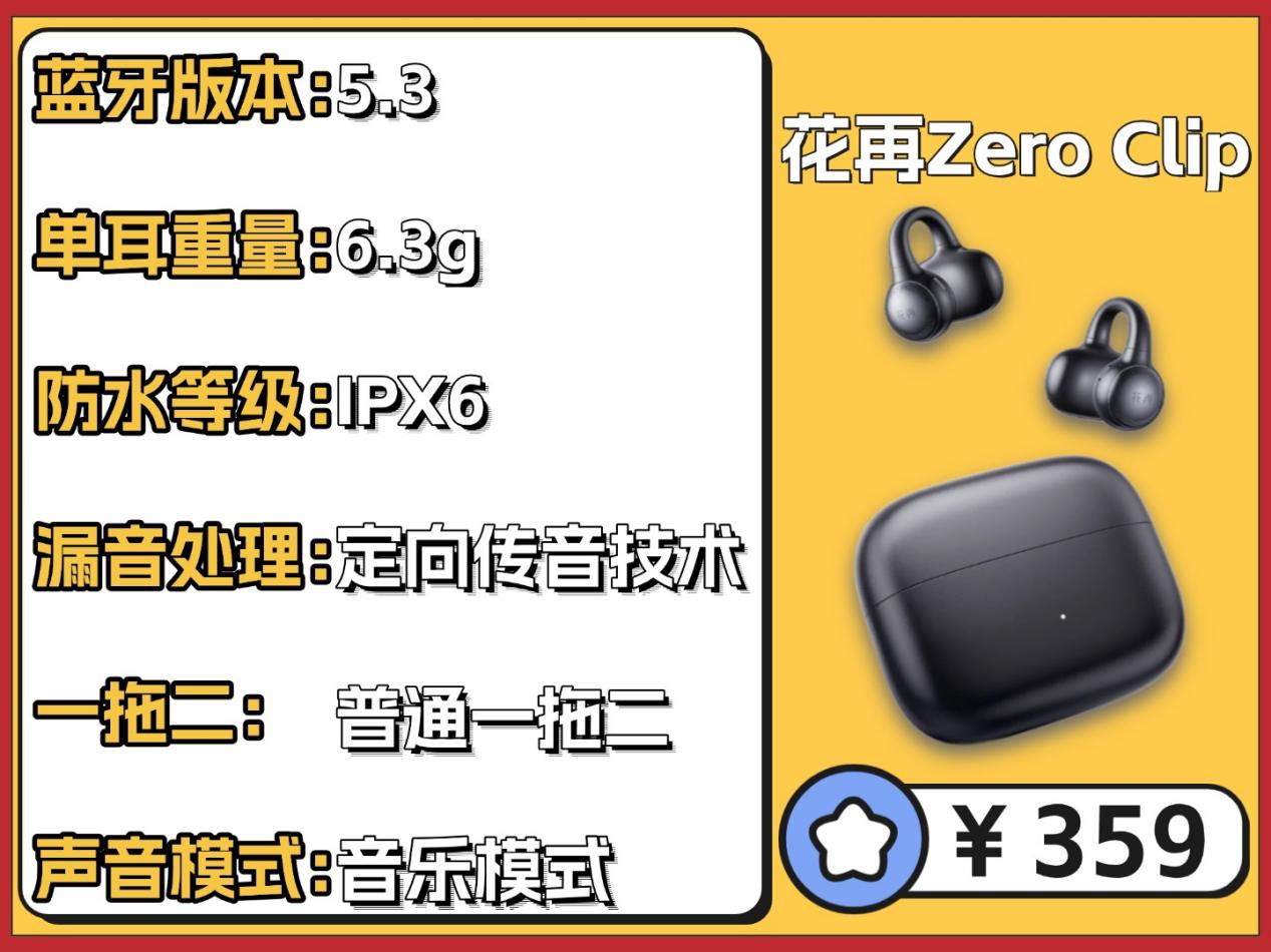 喇叭单元的尺寸直接决定了耳机整体的音质上限。通常来说,单元尺寸越大,声音的动态范围与推力就越充沛,整体听感与响度也会更具优势。以镀钛振膜为代表的金属振膜,高频表现尤为出色,声音稳定性佳且失真度低,只是整体听感会稍显单薄(如花再ZeroClip)。石墨烯振膜则兼具轻薄与刚性,形变能力强,听歌时低频力度更足,细节表现力也更为突出,只是造价相对较高(如虹觅Clip Pro)。大家可根据自身预算与听歌偏好,选择对应的振膜类型。