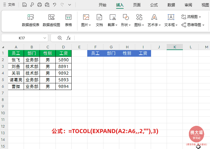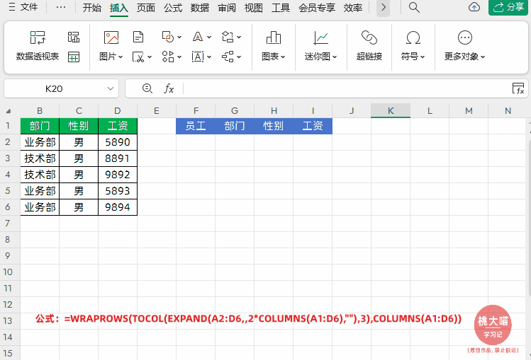 =WRAPROWS(TOCOL(EXPAND(A2:D6,,2*COLUMNS(A1:D6),""),3),COLUMNS(A1:D6))同样的,上面公式大家可以直接套用,如果批量增加2行,EXPAND函数第3参数就改成3*COLUMNS(A1:D6),然后以此类推。