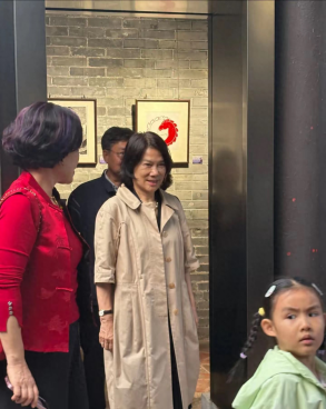 这位执掌着7万多人企业的“铁娘子”,当天的打扮简单清爽——黑色连衣裙配棕色方跟短靴,外搭一件半袖风衣。虽然素面朝天,短发造型显得面部轮廓有些硬朗,甚至被路人形容为“有点凶、显男相”,但那份干练利落的气质依然让人过目难忘。