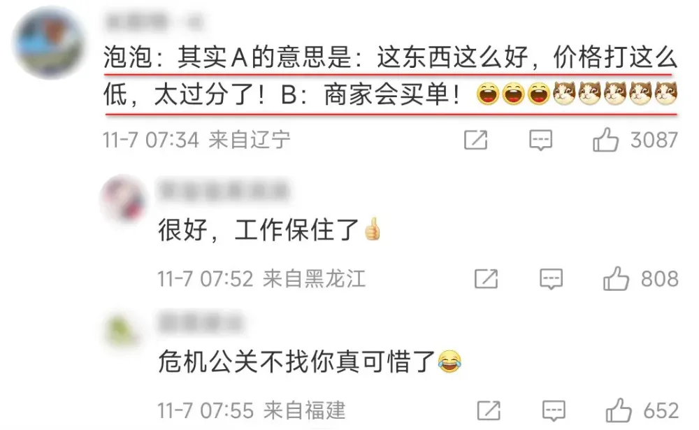 好消息是大部分打工人和第一位工作人员在情绪上都是——共鸣。至少比当年李佳琦“79元眉笔事件”导致的全网下头好得多得多得多……