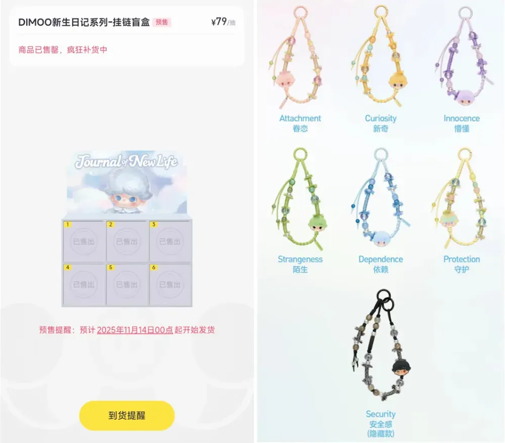 没错,就是上面这款新品DIMOO新生日记系列-挂链盲盒,售价为79元。