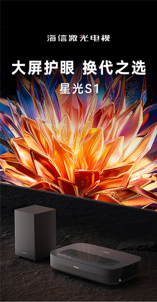 一方面激光电视的屏幕尺寸足够大,观影效果可以很沉浸,此外得益于激光电视漫反射的发光特性,使得我们即使较长时间观看,也不会引起眼疲劳的问题。而海信激光电视星光S1 100英寸便凭借优秀的产品力表现,成为了不少消费者关注的对象。