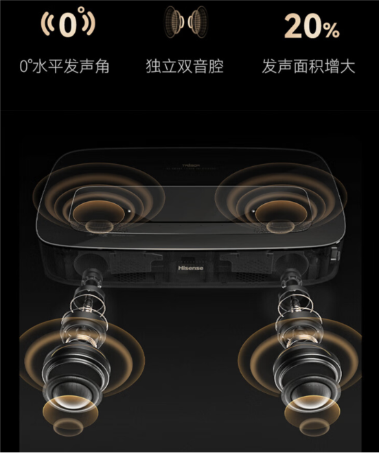 当然,作为一款电视,拥有大屏好画质只是基础,在音效方面,海信激光电视星光S1 100英寸也拥有2.1.2多声道加持,拥有90W的高功率表现。其创新性地搭载了两个独立天空发声单元,让声音可以经过屋顶反射带来声场的包裹感。