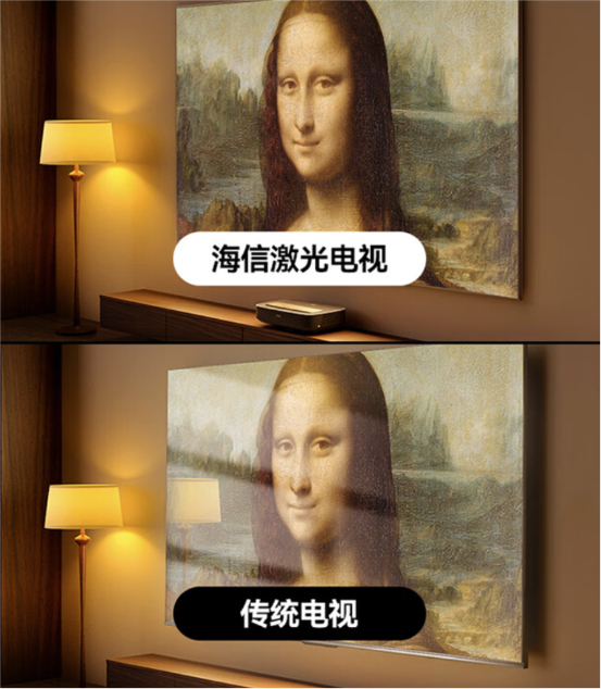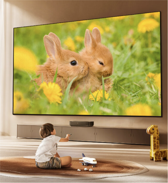 此外,海信激光电视星光S1 100英寸还搭载了专属定制的菲涅尔无源抗光屏,可以有效降低环境光线的干扰,让观影效果更为沉浸。相较于传统电视,激光电视的屏幕无需通电,所以也可以从源头避免辐射问题。