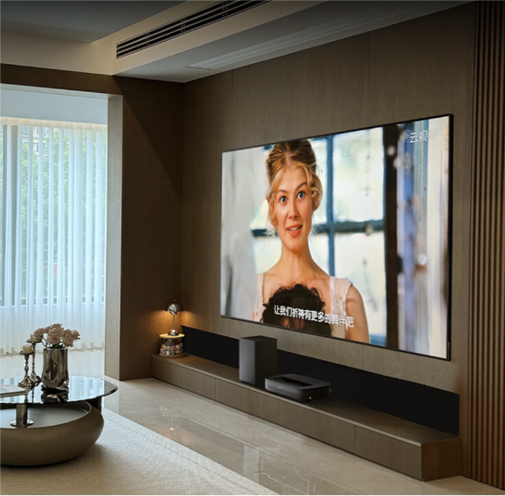 此外在针对家庭装修的搭配问题上,激光电视的屏幕也可以做到无缝贴墙,无需做专门的嵌入设计,可以让激光电视更好地融入不同的家装风格,在美观度和一体性的表现上也很好。