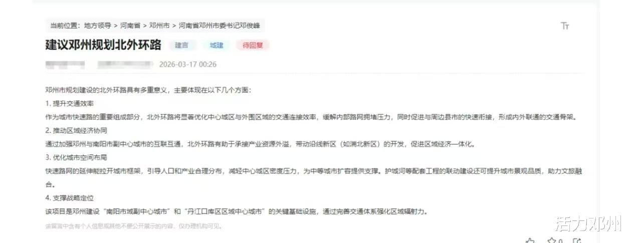 近日,邓州有网友建议:建议邓州规划北外环路