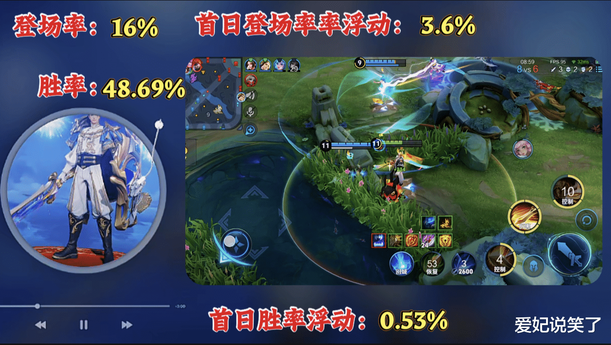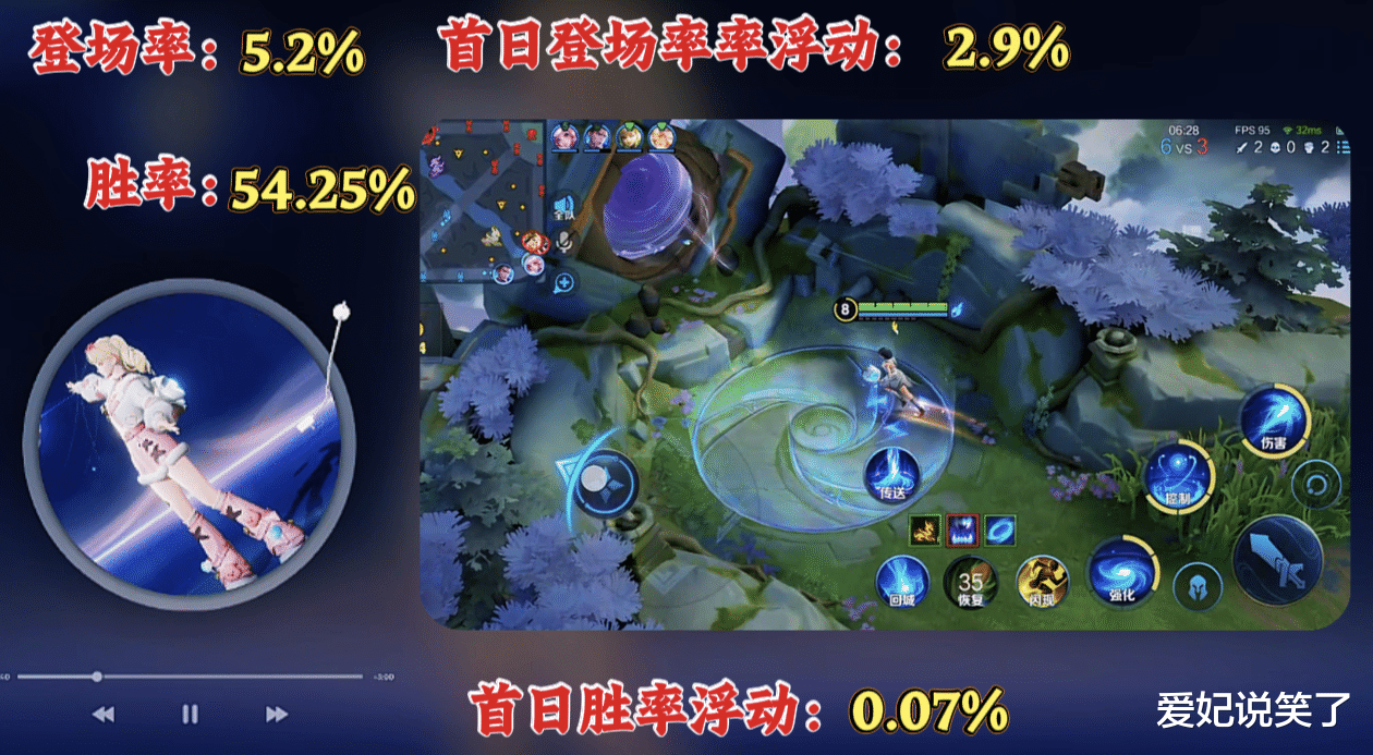 那么登场率翻倍的情况下,他的胜率却仅下滑了0.07%,可以忽略不计,当前胜率为54.25%