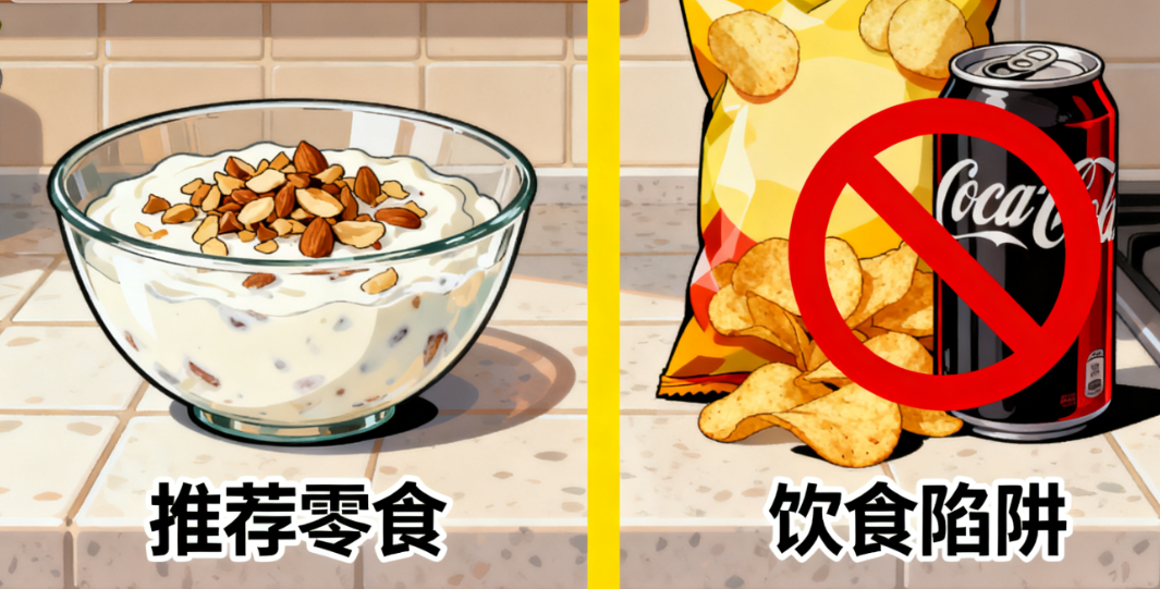 上午/下午:一小把原味坚果(核桃、杏仁,约10克);或无糖酸奶一杯,撒上少量坚果碎。
