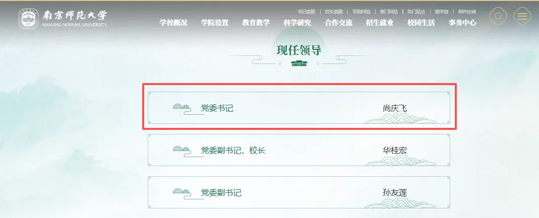 1月19日,南京师范大学官网上“现任领导”那一页有了些许变动,党委书记的位置换上了尚庆飞的名字,至于原来的书记王成斌,他有了新的去向,去了江苏省社科联就任党组书记与副主席,这种人事变动其实很常见,高校领导岗位调整每年都会发生。