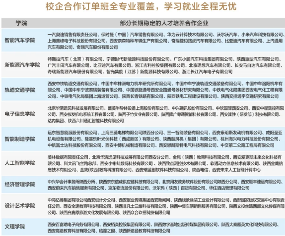 更具吸引力的是,学校所有专业均对接名企订单班:智能汽车学院对接一汽奥迪、保时捷(中国)等豪华品牌,新能源汽车学院牵手特斯拉、宁德时代、比亚迪等新能源巨头,轨道交通学院则与中车、中铁系国企合作,学生入学即锁定就业方向,毕业可直接入职头部企业。同时,本科学历与工学学位受国家认可,学生可直接考研、考公、考编或留学,升学路径畅通无阻。