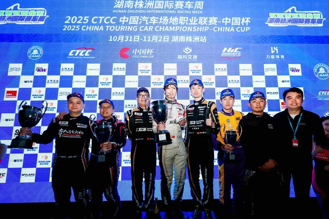 11月1日,汇聚四大赛事的2025湖南株洲国际赛车周迎来首个决赛日竞逐,CTCC中国杯完成年度收官决战第一回合正赛比拼。经过“55分钟+1圈”的精彩较量,浙江326车队刘子辰/吴怡帆/刘柠以杆位致胜姿态,豪取赛季第三座TCR组别桂冠。佛山雄基车队陈炳雄重返组别颁奖台最高席位,于TCS组别拔得头筹。北京DTM Racing车队王颢森/王俊尧/何晓乐于TC1组别上演“绝杀”好戏,斩获胜利。领克纵横车队全新组合师炜/韩东君发挥优异,于TC2组别取得优胜。广州星火Spark Racing车队梁景熙/钟嘉庆于TC3组别脱颖而出,再夺胜利。