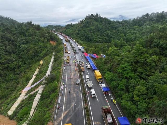 而根据资料来看,就在去年,该高速也曾发生了一次塌方事故。 在2023年4月,梅大高速由于大雨影响发生了崩塌性塌方,导致该路段双向交通中断。幸运的是,此次塌方没有造成人员伤亡。