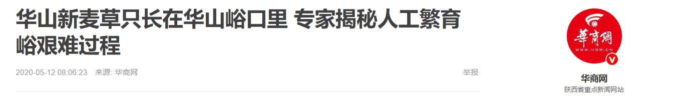 信息来源:华商网 华山新麦草只长在华山峪口里 专家揭秘人工繁育峪艰难过程 2020-05-12