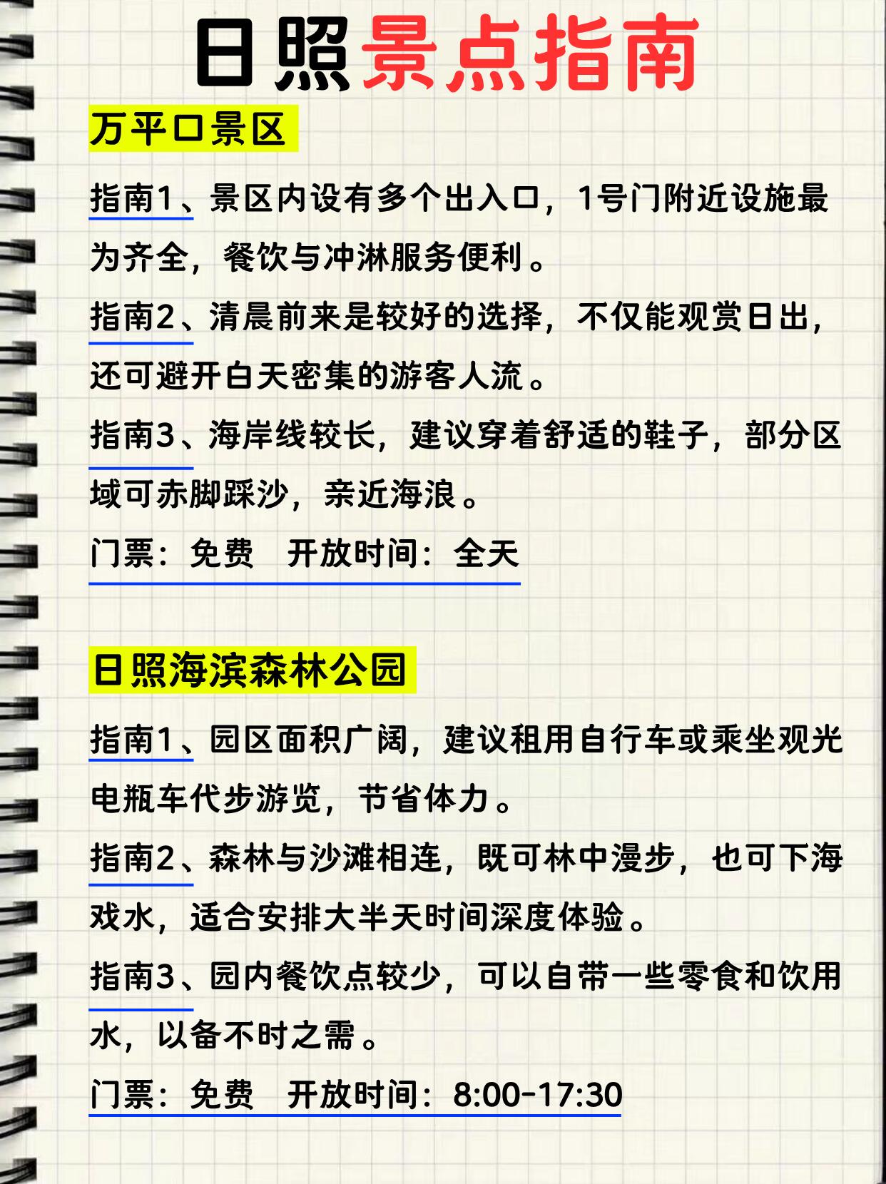 准备动身去日照de看过来啦!本J人贴心整理了这份游玩指南,内容细致又实用,特意分享给计划前往的伙伴们参考~