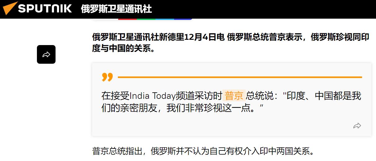 应该说,普京的做法也是尊重中国的表现,将主导权交给中印自己。