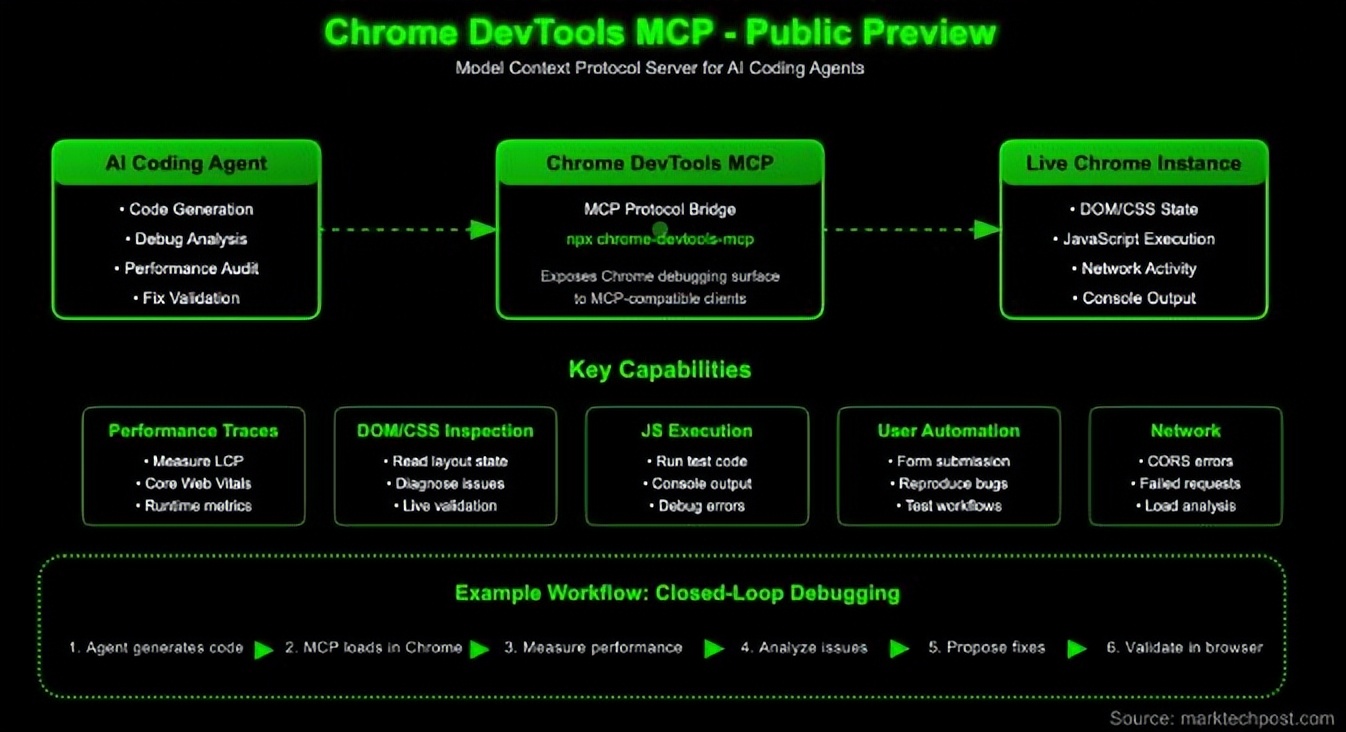 还在手动复制 Console 里的报错信息喂给 AI 吗?还在为 AI 读不懂网页 DOM 结构而头秃吗?Google Chrome 团队刚刚扔出一枚重磅炸弹:Chrome DevTools 正式支持 MCP 协议!这意味着,不需要安装任何浏览器扩展,你的 AI 代码编辑器就能直接“接管”浏览器,实时修复 Bug、分析网络请求。前端开发的玩法,真的变了。